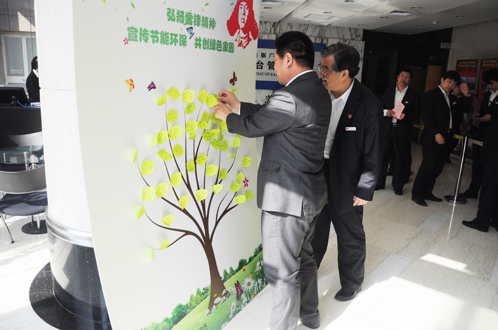 為大力弘揚(yáng)雷鋒精神,普及綠色環(huán)保理念,踐行企業(yè)社會(huì)責(zé)任,音像資料館項(xiàng)目部根據(jù)項(xiàng)目的特性,在3月5日開展了“學(xué)雷鋒”環(huán)保宣傳活動(dòng)?;顒?dòng)通過發(fā)放節(jié)能環(huán)保倡議書和向各入駐單位介紹音像資料館節(jié)能環(huán)保措施、目前水電消耗現(xiàn)狀來推廣綠色環(huán)保個(gè)人行為,倡導(dǎo)大家積極響應(yīng)國家提倡建設(shè)資源節(jié)約型社會(huì)的主旋律,共同大力推進(jìn)公共機(jī)構(gòu)節(jié)能,努力創(chuàng)建節(jié)約型建筑。同時(shí),向大家廣泛征集綠色環(huán)保宣言及簽名,大家紛紛將自己的環(huán)保宣言和“綠色祝愿”寫在樹葉形狀的便簽上,粘貼在活動(dòng)背景板中一棵大樹的樹枝上,活動(dòng)最終呈現(xiàn)出一棵枝葉茂盛、綠意盎然的大樹。通過這些宣傳倡導(dǎo)活動(dòng),“綠色環(huán)保,你我共行;雷鋒精神,你我共創(chuàng)”的理念深入人心。