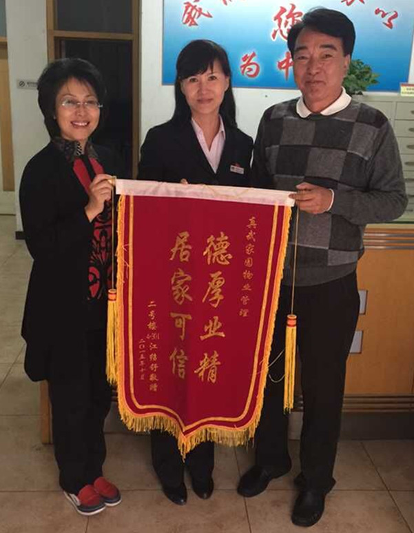 本報上期曾報道“千里尋失主—中廣物業(yè)再顯服務(wù)美譽和品質(zhì)”一事,上圖為10月26日,失主返京后,特地送來“德厚業(yè)精,居家可信”的錦旗,感謝真武家園員工的優(yōu)質(zhì)服務(wù)。