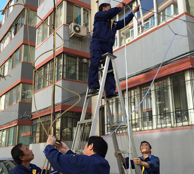 為了節(jié)約資源有人提出建議,用拆下的廢棄線作綁帶等等。施工過程中要注意路過的行人和車輛,工作進(jìn)行到中午才完成了工作量的三分之一,大家都顧不上休息而是繼續(xù)工作,終于在下午6點(diǎn)多完成了小區(qū)內(nèi)節(jié)日照明燈的改造。