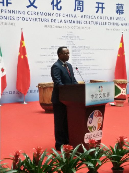 2016年10月18日,肯尼亞共和國駐華大使館、盧旺達共和國駐華大使館、南蘇丹共和國駐華大使館、坦桑尼亞零和共和國駐華大使館、烏干達共和國駐華大使館、安徽省任命政府辦事廳、安徽省文化廳、安徽省旅游局、中國國際貿(mào)易促進委員會安徽委員會、合肥市人民政府新聞辦公廳一行領(lǐng)導(dǎo)蒞臨安徽博物院。開幕會上,中-非兩方代表上臺就此次活動的開展給予大力贊揚,同時希望安徽-東非共同體多進行文化交流。