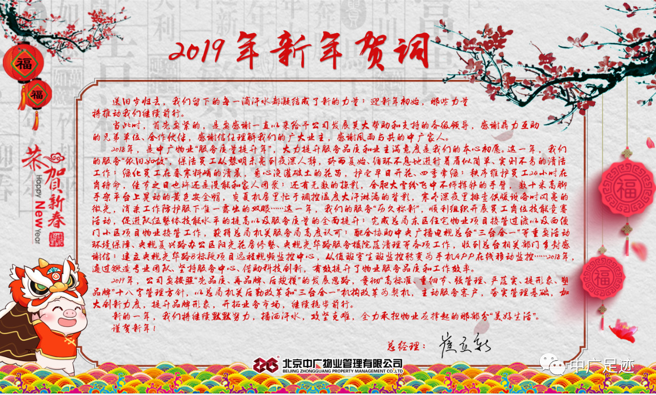 2018年,是中廣物業(yè)“服務(wù)質(zhì)量提升年”,大力提升服務(wù)品質(zhì)和業(yè)主滿意度是我們的本心初愿。這一年,我們的服務(wù)“依舊如故”,保潔員工從黎明未亮到夜深人靜,終而復(fù)始、循環(huán)不息地進(jìn)行著看似簡單、實(shí)則不易的清潔工作;綠化員工在春寒料峭的清晨,悉心澆灌破土的花苗,護(hù)它早日開花、四季常綠;秩序維護(hù)員工24小時(shí)在崗待命,佳節(jié)之日也許還是沒能和家人團(tuán)聚;還有無數(shù)的掠影,合肥大雪紛飛中不停揮鏟的手臂,數(shù)十米高腳手架平臺上晃動的黃色安全帽,炎夏機(jī)房里忙于調(diào)控溫度大汗淋漓的背影,寒冬深夜里排查供暖設(shè)備時(shí)閃亮的微光,消殺工作防護(hù)服下唯一露出的雙眼……這一年,我們的服務(wù)“歷久彌新”,順利組織開展員工崗位技能競賽活動,促進(jìn)隊(duì)伍整體技能水平的提高以及服務(wù)質(zhì)量的全面提升;完成總局東區(qū)住宅物業(yè)項(xiàng)目接管過渡以及西便門小區(qū)項(xiàng)目物業(yè)接管工作,獲得總局機(jī)關(guān)服務(wù)局高度認(rèn)可;配合協(xié)助中央廣播電視總臺“三臺合一”等重要活動環(huán)境保障、央視復(fù)興路辦公區(qū)陽光花房修整、央視光華路服務(wù)樓院落清理等各項(xiàng)工作,收到總臺相關(guān)部門多封感謝信;建立央視光華路B標(biāo)段項(xiàng)目遠(yuǎn)程視頻監(jiān)控中心,從值班室坐班監(jiān)控轉(zhuǎn)變?yōu)槭謾C(jī)APP在線移動監(jiān)控……2018年,通過鍛造專業(yè)團(tuán)隊(duì)、堅(jiān)持服務(wù)中心、借助科技創(chuàng)新,有效提升了物業(yè)服務(wù)品質(zhì)和工作效率。