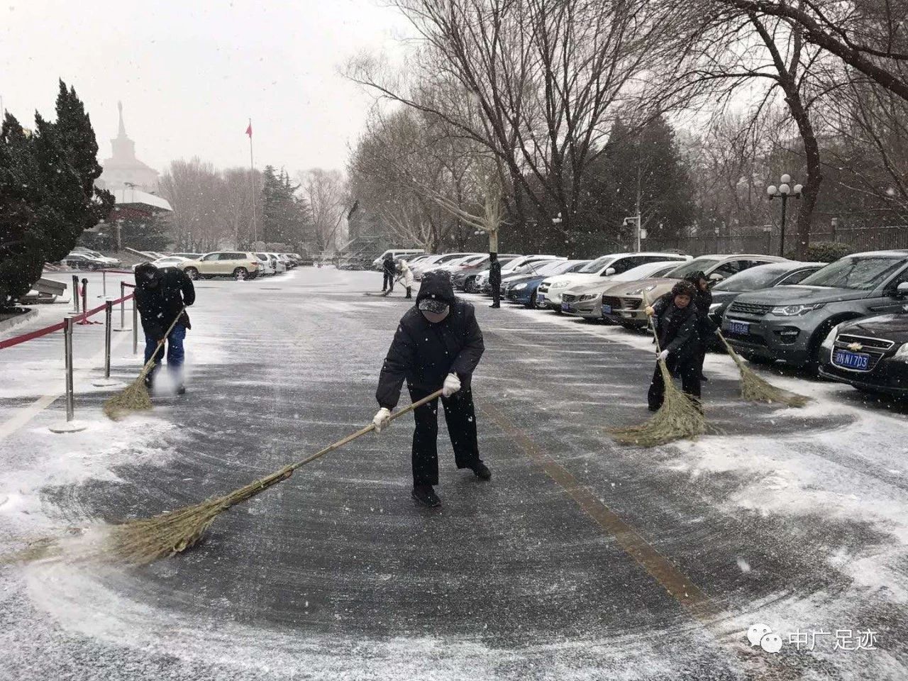 紛紛揚揚的雪一直未停,氣溫持續(xù)下降,各項目員工不畏嚴寒,始終堅持掃雪鏟冰工作,確保主要通道路面無積雪、無結(jié)冰,很多員工的頭上、身上都覆蓋了一層白雪,大家顧不上撣落身上的雪,只顧關(guān)注路面清理情況。
