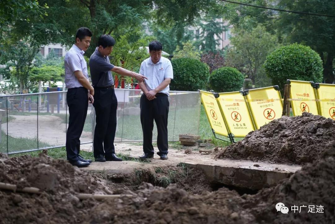 6月19日上午8時(shí),真武家園項(xiàng)目維保員工呂家斌巡視發(fā)現(xiàn)2號(hào)樓3單元門(mén)前綠地潮濕并有滲水,項(xiàng)目部立即組織現(xiàn)場(chǎng)勘察,分析判斷是2、3號(hào)樓高區(qū)自來(lái)水供水管道漏水,項(xiàng)目部第一時(shí)間上報(bào)公司,公司總經(jīng)理崔立新等公司領(lǐng)導(dǎo)以及公司技術(shù)管理部等部門(mén)有關(guān)人員迅速趕赴現(xiàn)場(chǎng),決定馬上實(shí)施挖掘,緊急搶修。