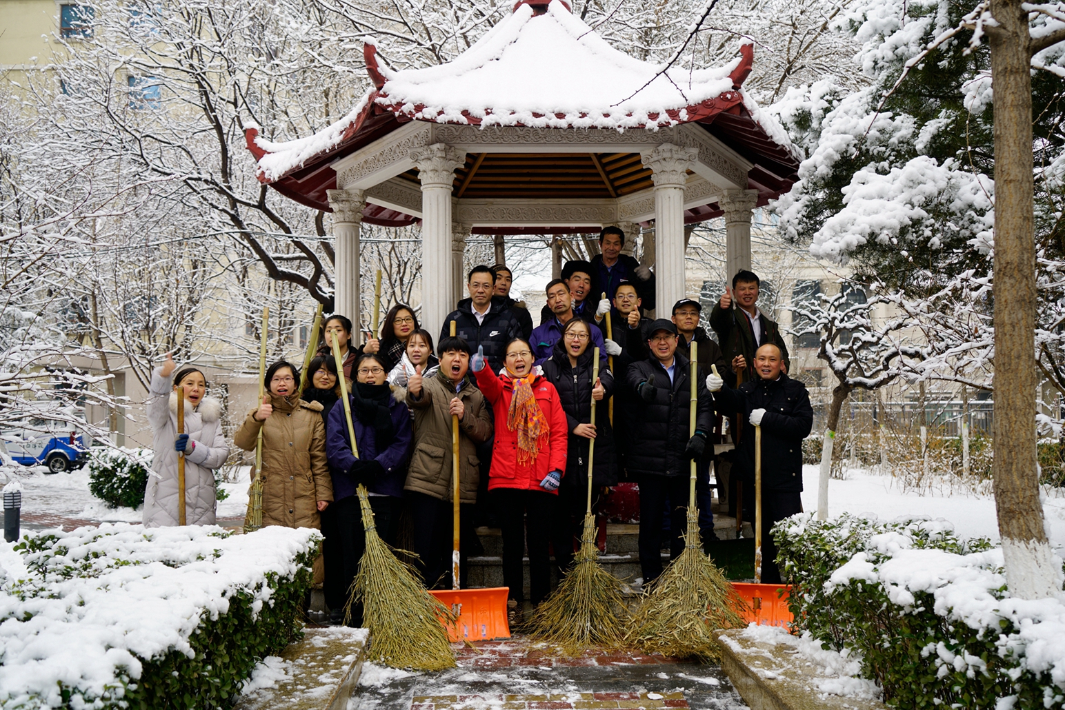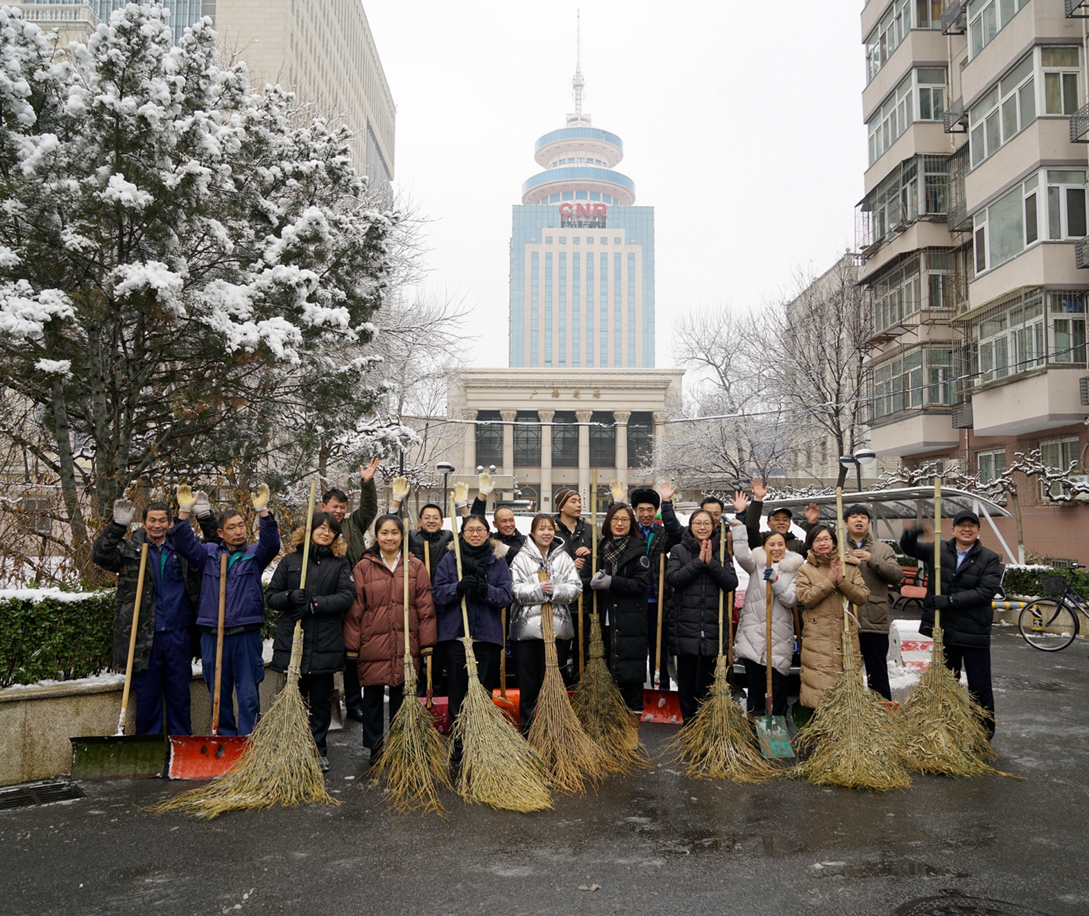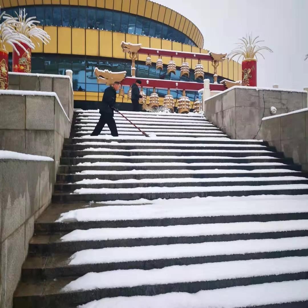 1月5日晚間北京迎來(lái)了新年的初雪,一夜的降雪后,整個(gè)京城銀裝素裹,但也給大家的出行帶來(lái)了不便。公司在京各項(xiàng)目部啟動(dòng)應(yīng)急預(yù)案,安排各項(xiàng)目值班人員用雪鏟等掃雪。夜里11點(diǎn),央視復(fù)興路部值班人員組織員工迎著大雪冒著嚴(yán)寒進(jìn)行園區(qū)積雪清掃,大家不畏嚴(yán)寒,不怕累,個(gè)個(gè)干得滿頭大汗,熱火朝天,現(xiàn)場(chǎng)一派繁忙景象,他們忙碌的身影伴隨著美麗的雪景,形成了一道獨(dú)特靚麗的風(fēng)景線,充分展現(xiàn)了中廣物業(yè)員工的風(fēng)采。
