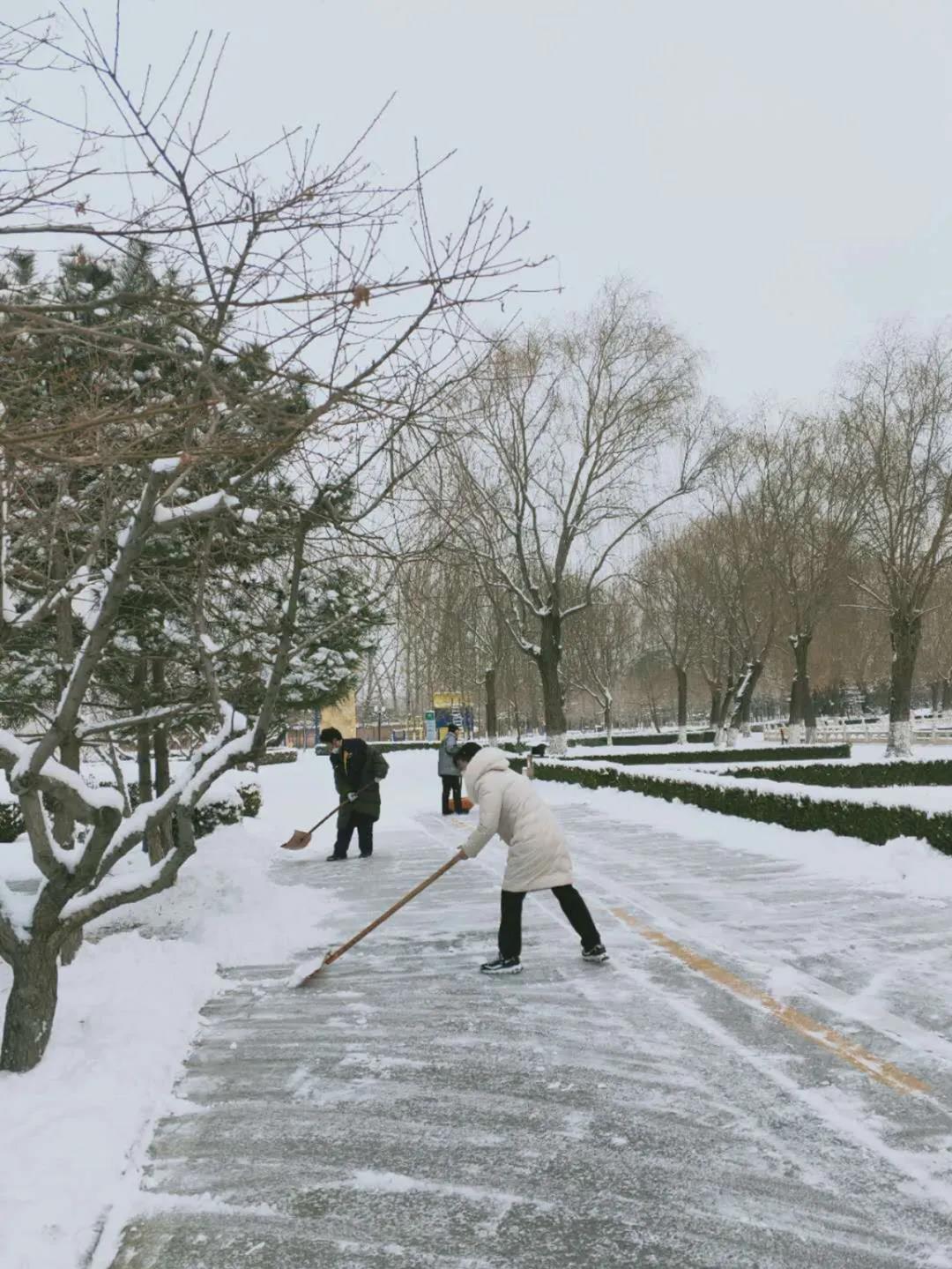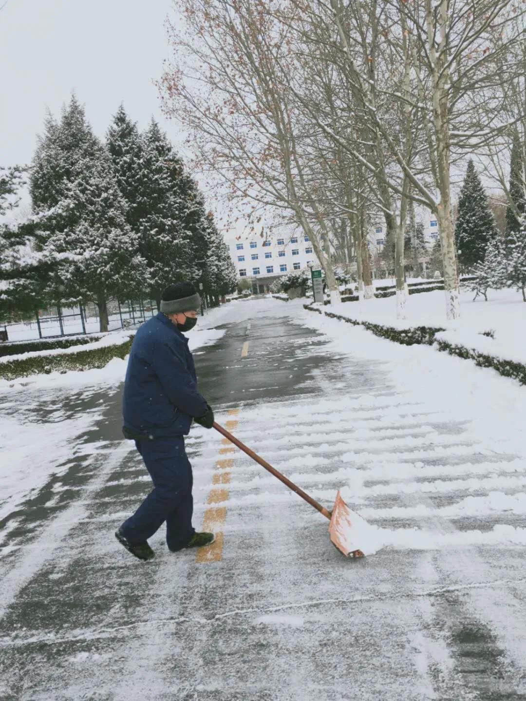 在抗擊疫情的關(guān)鍵時期,北京迎來了持續(xù)性降雪天氣,氣溫驟降,道路結(jié)冰,嚴(yán)重影響出行安全。在做好個人防護的前提下,項目部全員積極行動、齊心協(xié)力,頂風(fēng)雪、冒嚴(yán)寒,開展掃雪除冰工作。大家揮舞著笤帚和鐵鍬,風(fēng)雪中堅守“疫”線,凜冽的寒風(fēng)讓他們的臉和雙手被凍的通紅,但奉獻的熱情和團結(jié)的力量讓他們化嚴(yán)寒為動力,讓中廣人暖心服務(wù)在風(fēng)雪中升溫,為出行安全提供有力保障。
