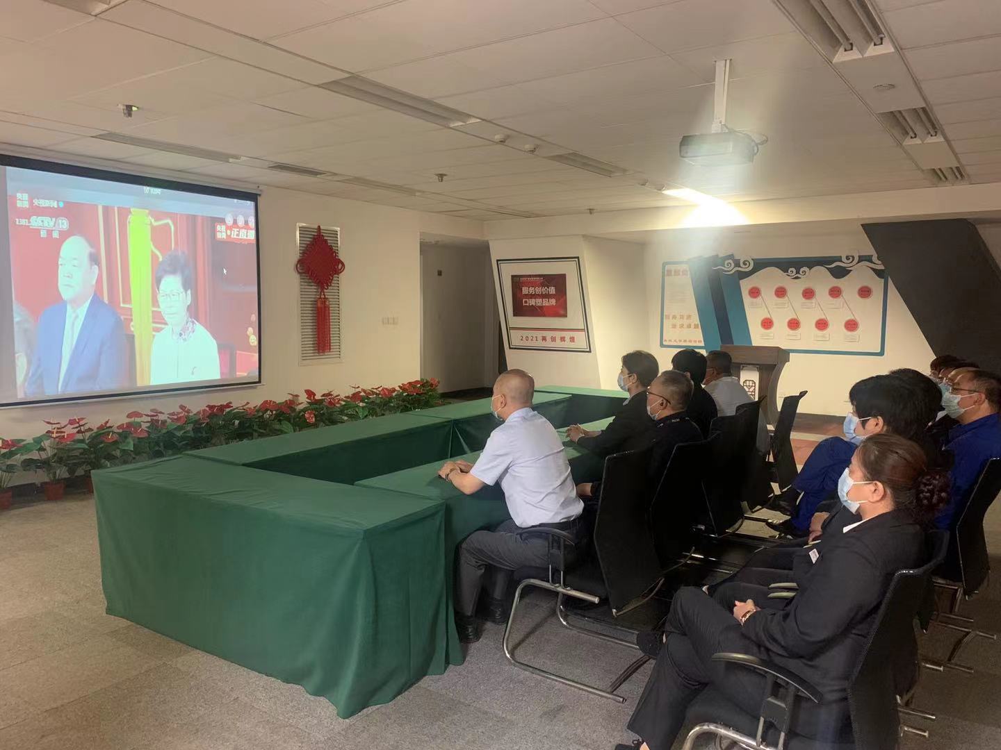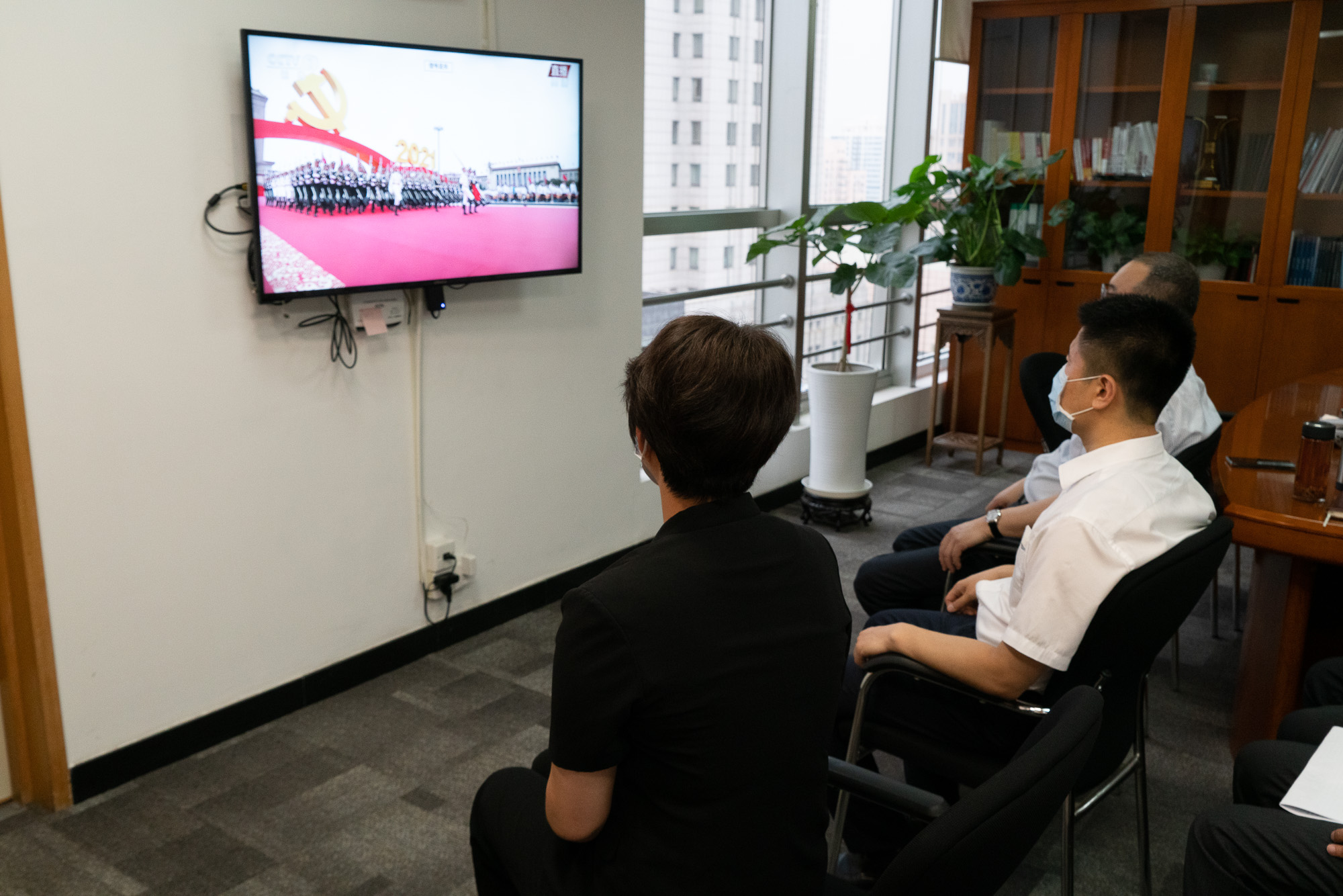 2021年7月1日上午8時,慶祝中國共產(chǎn)黨成立100周年大會在北京天安門廣場隆重舉行。中共中央總書記、國家主席、中央軍委主席習(xí)近平發(fā)表重要講話。中廣物業(yè)公司各部門、各項目組織黨員干部收看中國共產(chǎn)黨成立100周年慶祝大會現(xiàn)場直播,公司黨總支書記、總經(jīng)理崔立新及領(lǐng)導(dǎo)班子等成員在音像資料館會議室集中收看。