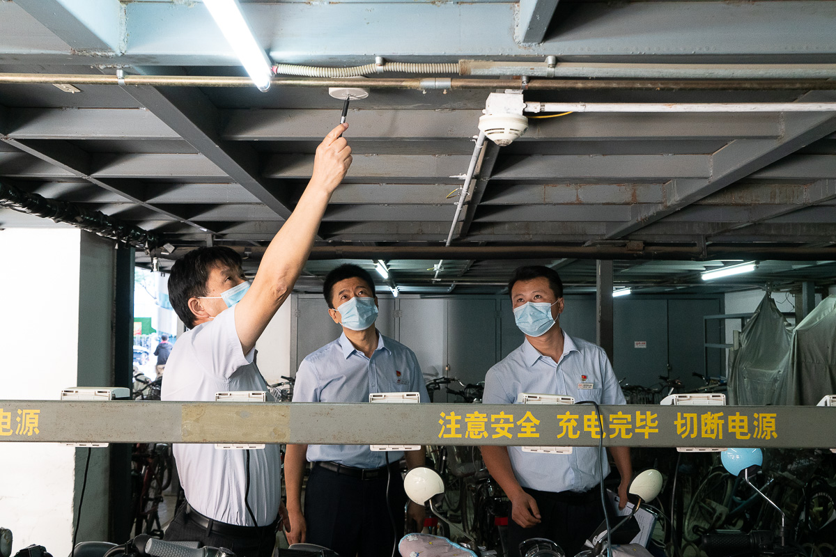 2021年9月20日通州區(qū)某小區(qū)因電動(dòng)自行車室內(nèi)充電引發(fā)火災(zāi)事故,導(dǎo)致5名居民死亡。9月22日,公司總經(jīng)理、安委會(huì)主任崔立新帶隊(duì),對(duì)公司服務(wù)的總臺(tái)音像資料館、總臺(tái)影視之家、央視住宅小區(qū)和廣電總局小區(qū)等項(xiàng)目開展電動(dòng)自行車充電安全專項(xiàng)檢查工作,公司總經(jīng)理助理何軍、技術(shù)總監(jiān)李長(zhǎng)青、品質(zhì)管理部經(jīng)理兼安委會(huì)副主任劉蕾、技術(shù)管理部主任呂全軍以及相關(guān)項(xiàng)目部負(fù)責(zé)人陪同檢查。