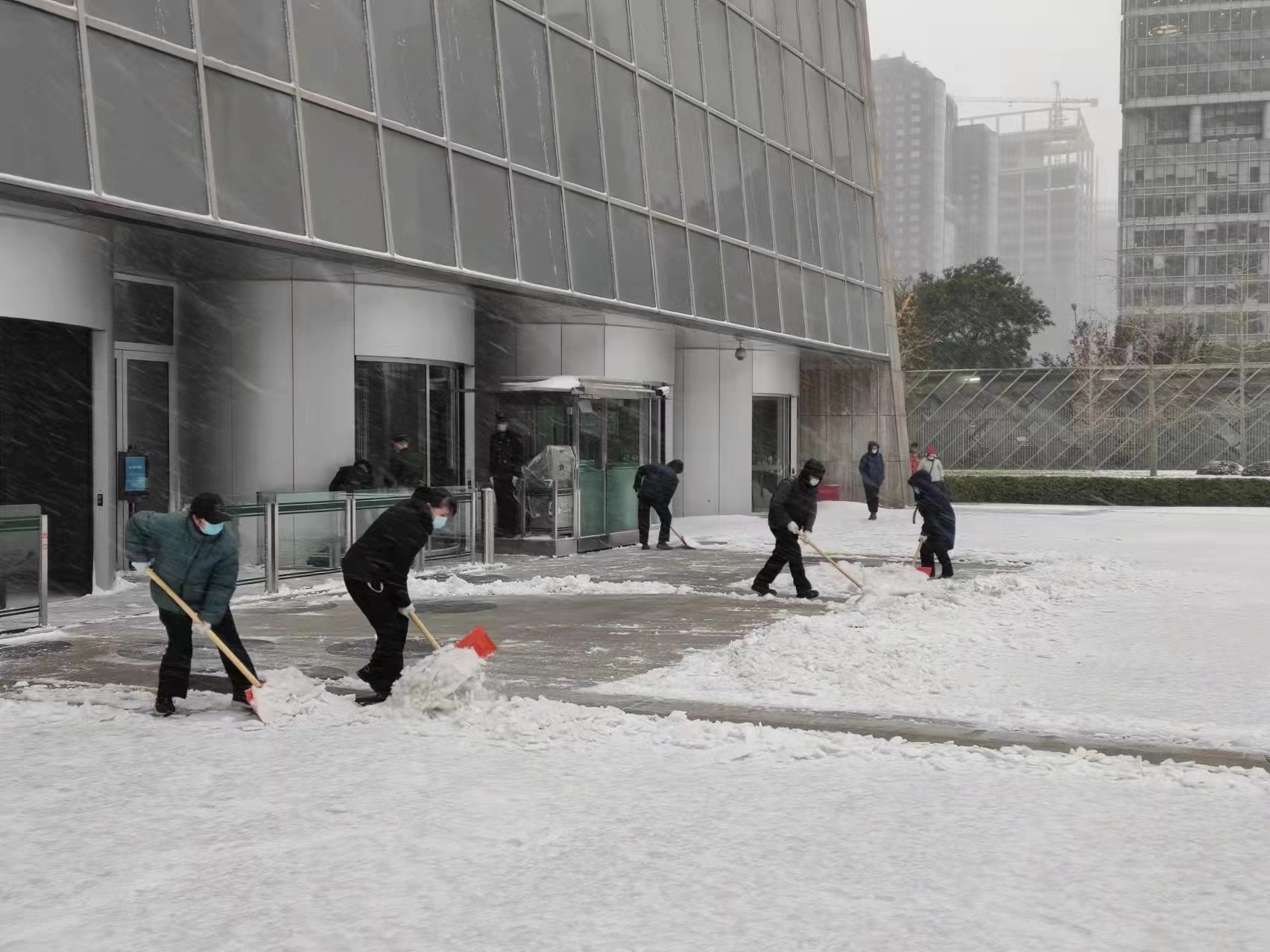 為最大限度地減少降雪天氣對業(yè)主出行造成的影響,公司安委會密切關注氣象預警,第一時間轉發(fā)寒潮、大風、暴雪、道路結冰黃色預警信息,在京各項目立即啟動雪天應急預案,積極投入到掃雪除冰工作中,在主要通道噴灑融雪劑,樓門入口鋪設防滑墊,設立“小心地滑”提示牌,出動三百余人次,利用推雪板等各種掃雪工具進行清理。