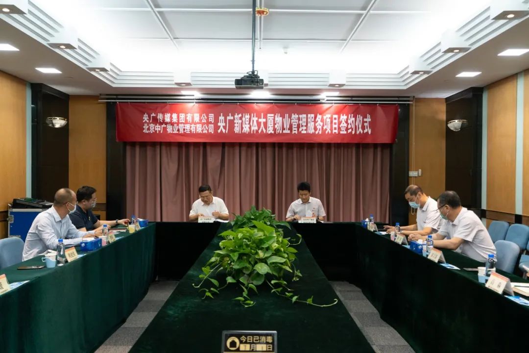 2022年7月1日下午,恰逢中國共產(chǎn)黨建黨101周年之際,央廣新媒體大廈物業(yè)管理服務(wù)項目簽約儀式在總臺音像資料館104會議室舉行。央廣傳媒集團(tuán)有限公司副總經(jīng)理周竟東與北京中廣物業(yè)管理有限公司總經(jīng)理崔立新代表雙方簽字。