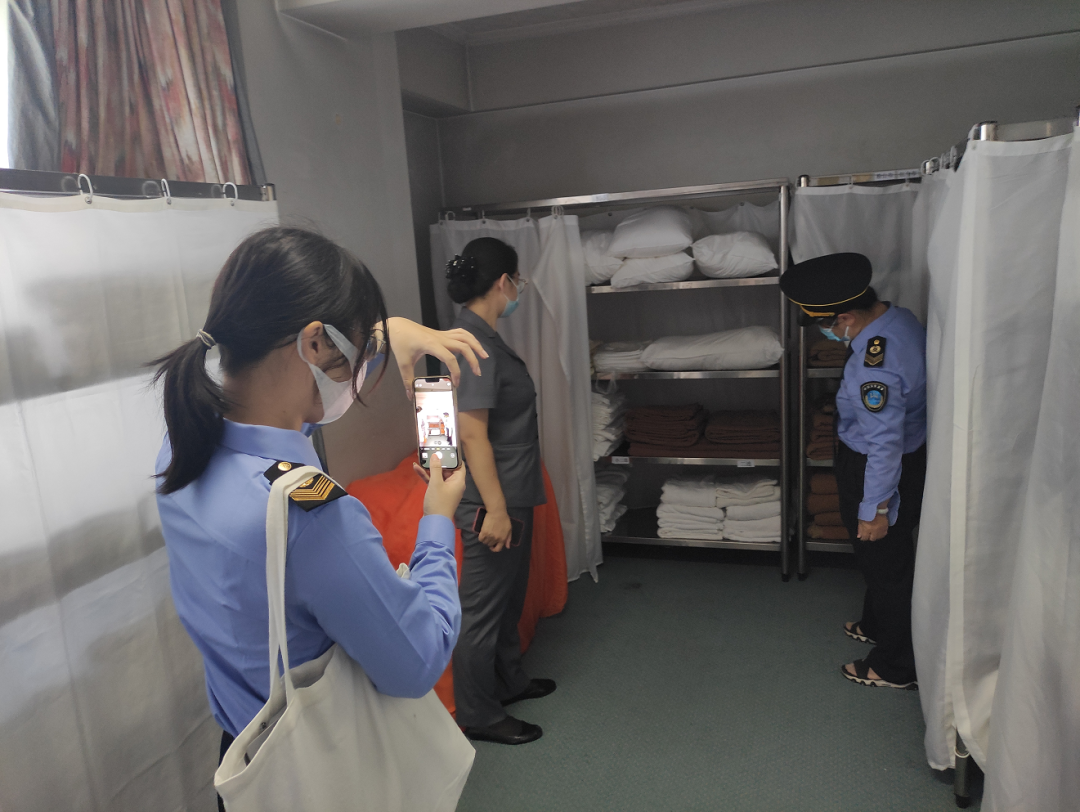 近日,北京市海淀區(qū)衛(wèi)生健康監(jiān)督所對北京中廣物業(yè)管理有限公司影視之家項目部進(jìn)行雙隨機(jī)監(jiān)督檢查。檢查組一行對前臺、美發(fā)室、樓層的消毒間和布草間以及客房內(nèi)進(jìn)行了全面細(xì)致的檢查,并對服務(wù)人員的衛(wèi)生知識掌握情況及消毒操作流程進(jìn)行了現(xiàn)場抽考和指導(dǎo)。