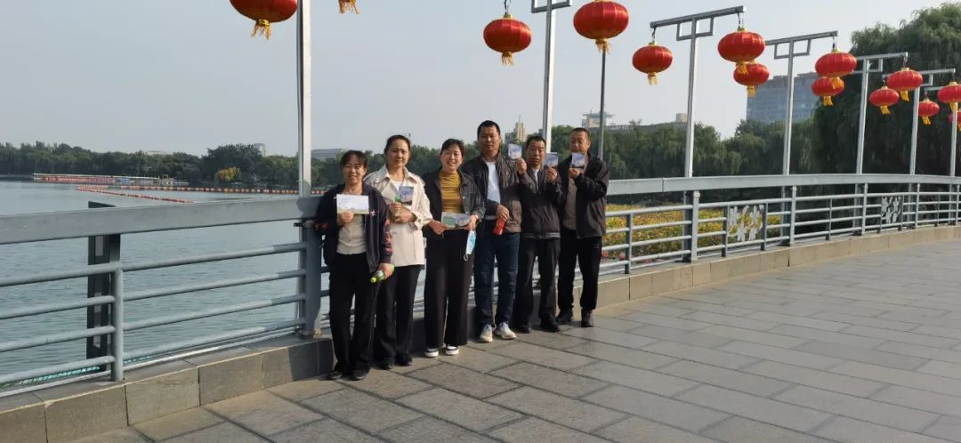 健步走活動以玉淵潭公園南門入口處為起點,繞行玉淵潭公園西湖一圈返回出發(fā)起點,按照活動規(guī)則,職工參與健步走活動者,需在公園南門打卡處領(lǐng)取打卡手冊,按規(guī)定路線經(jīng)公園西門南側(cè)攬玉橋打卡處蓋章打卡,再返回至南門打卡處集齊印章?!氨淘铺欤S葉地。秋色連波,波上寒煙翠?!币宦飞?,大家欣賞著沿途美景,享受著運動活力。