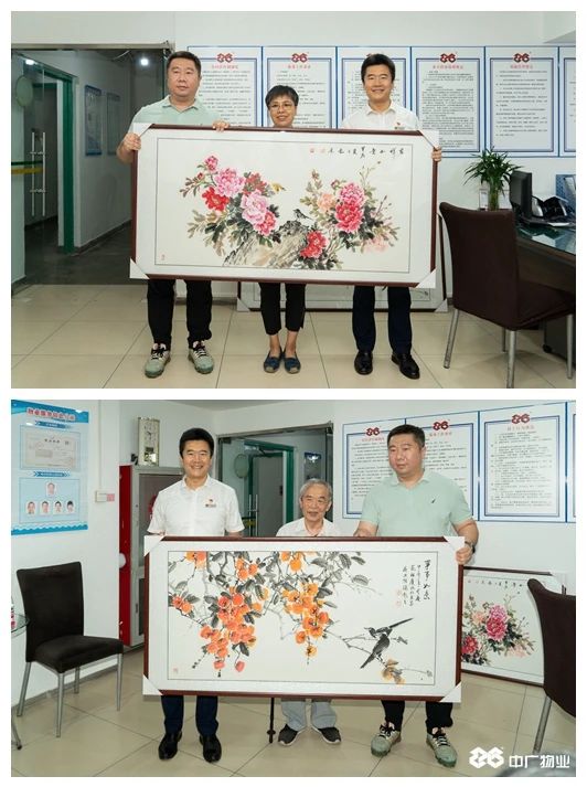 近日,業(yè)主在梵谷水郡居委會領導陪同下,將兩幅親筆畫作送到北京中廣物業(yè)管理有限公司梵谷水郡項目部,感謝公司物業(yè)團隊提升服務品質帶來日新月異的變化和公司員工的辛勤付出,畫作中“牡丹、柿子”躍然紙上,寓意“吉祥好運、事事如意”,期望物業(yè)工作越來越好。公司領導代表公司接收畫作并感謝業(yè)主對公司物業(yè)服務工作的肯定。