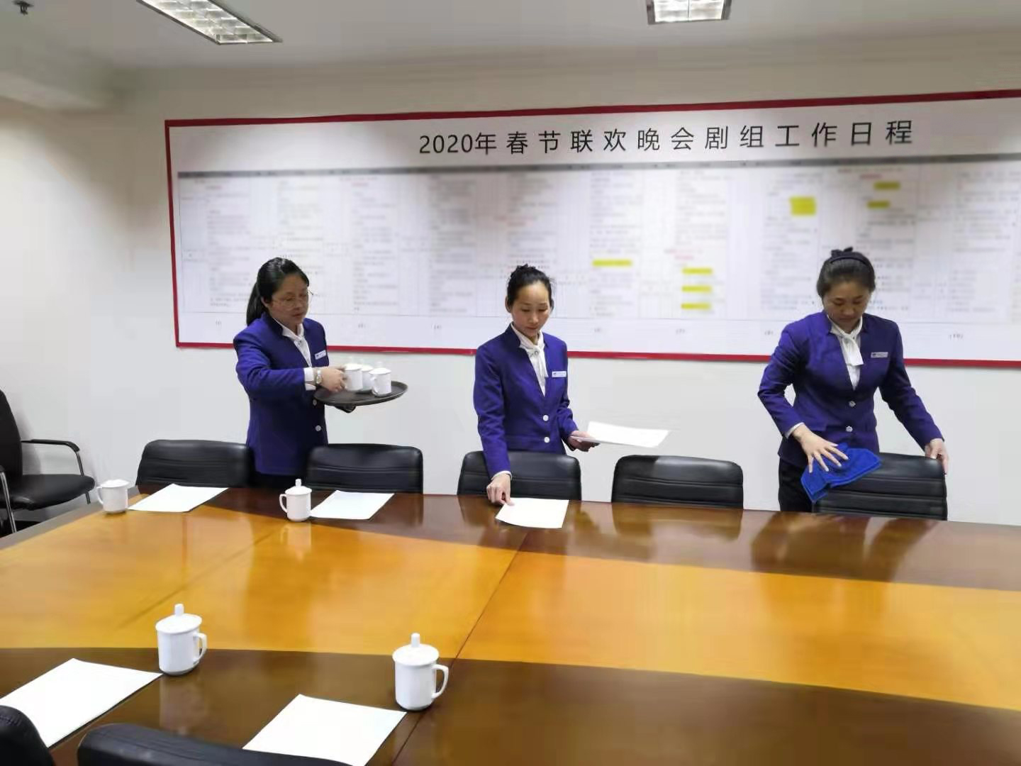 一年一度的春節(jié)晚會(huì),是中央廣播電視總臺(tái)獻(xiàn)給全國(guó)人民的一份禮物,也是全球海內(nèi)外華人共享華夏傳統(tǒng)節(jié)日的時(shí)刻,為籌辦好這臺(tái)晚會(huì),中央廣播電視總臺(tái)高度重視。中廣物業(yè)公司負(fù)責(zé)總臺(tái)復(fù)興路辦公區(qū)的環(huán)境衛(wèi)生工作以及春晚劇組所在辦公區(qū)域的服務(wù)工作,能夠服務(wù)于春晚,中廣物業(yè)公司深感責(zé)任重大。為保障春晚劇組有一個(gè)良好的工作環(huán)境,2019年4月,春晚劇組剛一進(jìn)入,公司即成立了專項(xiàng)組織機(jī)構(gòu),負(fù)責(zé)對(duì)口接待服務(wù)春晚劇組,在長(zhǎng)達(dá)半年的時(shí)間里,各項(xiàng)服務(wù)保障工作及時(shí)到位,為春晚劇組提供了滿意舒心的工作環(huán)境,受到春晚劇組的肯定。為配合春晚彩排活動(dòng),中廣物業(yè)公司央視復(fù)興路項(xiàng)目部全體人員放棄休息全力保障彩排活動(dòng),做到每次春晚彩排活動(dòng)提前半天完成各大小演播室、審看間、記者間等區(qū)域的衛(wèi)生保潔工作,并對(duì)演員、觀眾活動(dòng)區(qū)域進(jìn)行不間斷巡視保潔,活動(dòng)區(qū)域內(nèi)的每個(gè)衛(wèi)生間都有專人值守,保障為參加春晚彩排人員提供清潔衛(wèi)生的環(huán)境,直至春晚聯(lián)排活動(dòng)結(jié)束。