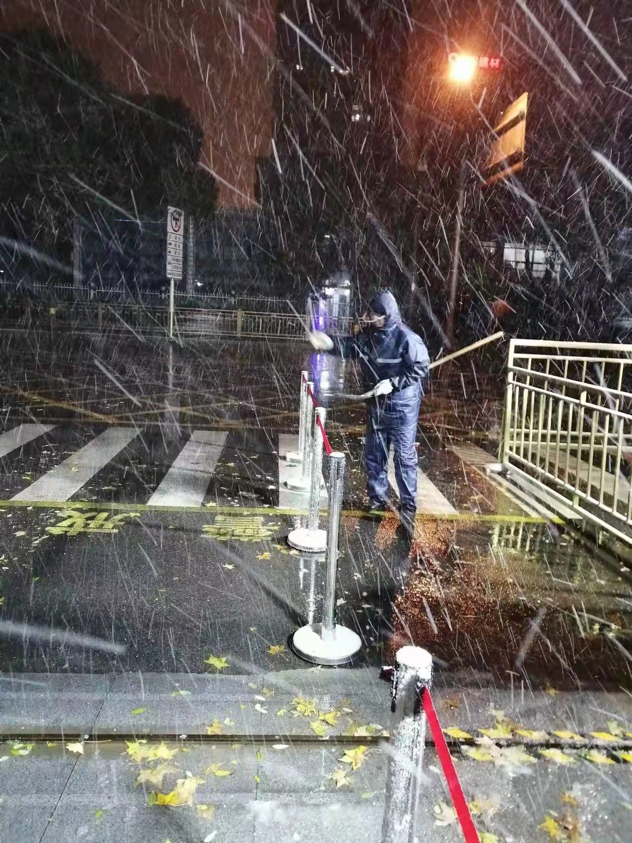 11月6日傍晚至7日,北京受強冷空氣影響,立冬逢初雪,大地悄然間穿上皚皚銀裝,地面濕滑、道路結冰,給來往人員和車輛的出行帶來不便。北京中廣物業(yè)管理有限公司在京各項目以雪為令,迎風雪、頂嚴寒,積極有序開展掃雪除冰工作,消除安全隱患。