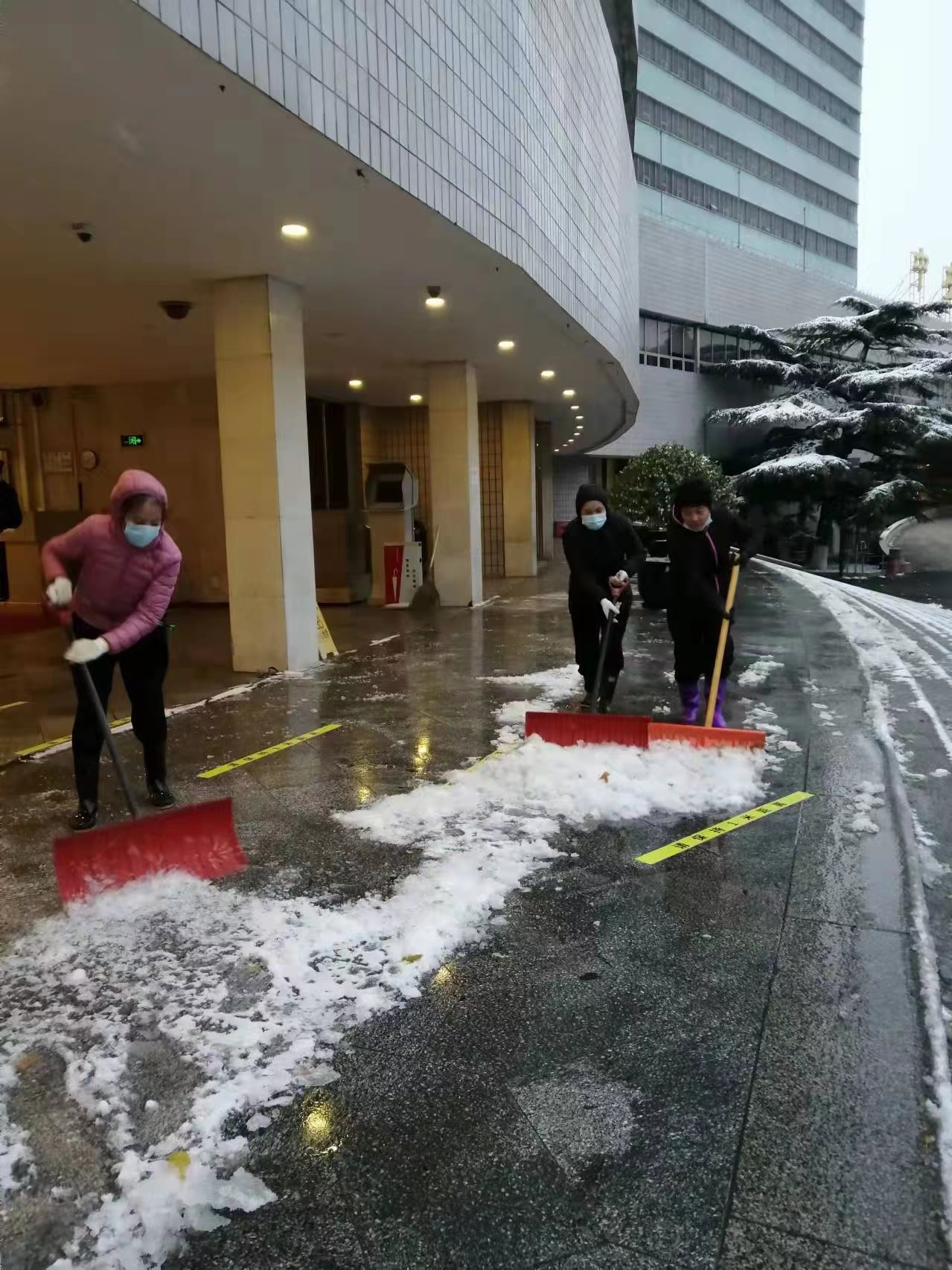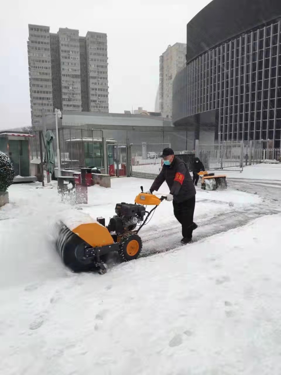 為最大限度地減少降雪天氣對業(yè)主出行造成的影響,公司安委會密切關注氣象預警,第一時間轉發(fā)寒潮、大風、暴雪、道路結冰黃色預警信息,在京各項目立即啟動雪天應急預案,積極投入到掃雪除冰工作中,在主要通道噴灑融雪劑,樓門入口鋪設防滑墊,設立“小心地滑”提示牌,出動三百余人次,利用推雪板等各種掃雪工具進行清理。
