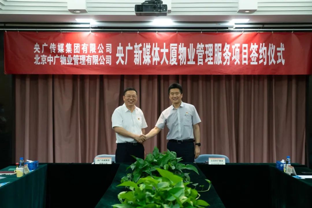 2022年7月1日下午,恰逢中國共產(chǎn)黨建黨101周年之際,央廣新媒體大廈物業(yè)管理服務(wù)項目簽約儀式在總臺音像資料館104會議室舉行。央廣傳媒集團(tuán)有限公司副總經(jīng)理周竟東與北京中廣物業(yè)管理有限公司總經(jīng)理崔立新代表雙方簽字。