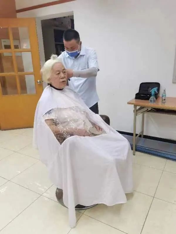9月8日一大早,老同志們陸續(xù)來到總臺五棵松社區(qū)活動站排隊等候理發(fā),五棵松項目嚴格按照疫情防控要求,做好掃碼登記及現(xiàn)場的消毒工作。83歲的張阿姨笑著說:“這段時間不能理發(fā)太不方便了,去外面理發(fā)也不放心。”80歲的王大爺原本凌亂的頭發(fā)經(jīng)過公司理發(fā)師傅的精心修剪,立馬變得整齊利落,整個人看上去也顯得精神了許多,頭發(fā)理好后吳大爺看著鏡子里的自己,露出了滿意的笑容。周圍的老同志們也紛紛豎起了大拇指。