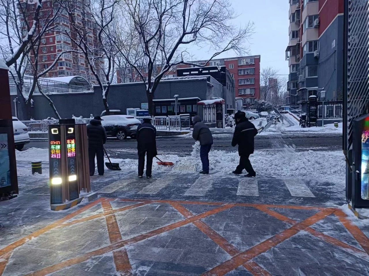 2月20日傍晚至2月21日凌晨,北京城區(qū)降雪明顯,局地中到大雪,地面出現(xiàn)積雪和結(jié)冰,給來(lái)往人員和車輛的出行帶來(lái)嚴(yán)重影響。氣溫驟降的雪夜里,北京中廣物業(yè)管理有限公司在京各項(xiàng)目聞雪而動(dòng),步履不停,迅速開(kāi)展掃雪除冰作業(yè),切實(shí)保障業(yè)主出行安全和道路暢通,用實(shí)際行動(dòng)詮釋責(zé)任與擔(dān)當(dāng)。