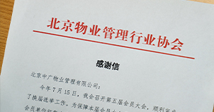 日前,北京中廣物業(yè)管理有限公司收到北京物業(yè)管理行業(yè)協(xié)會的感謝信——感謝公司晏春梅、董婕2位同志擔任大會志愿者,協(xié)助保障北京物業(yè)管理行業(yè)協(xié)會第五屆會員大會順利召開。...